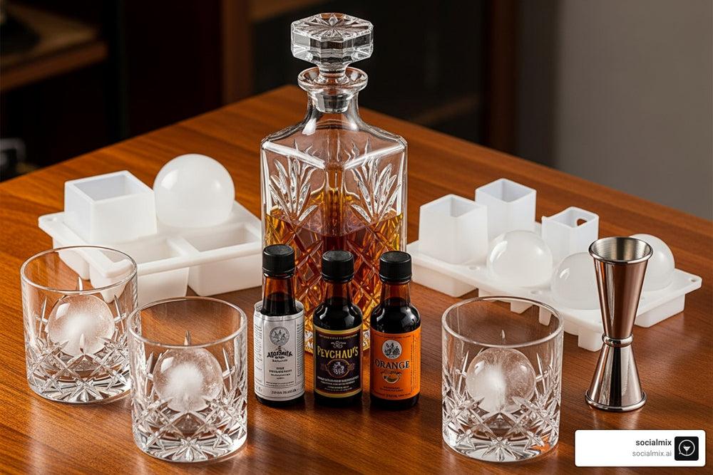For someone new to Old Fashioneds, focus on the essential ingredients. A quality, budget-friendly bottle of rye or bourbon is the perfect starting point. We recommend Rittenhouse Straight Rye for its bold, spicy kick, or Four Roses Bourbon for a smoother, sweeter profile.